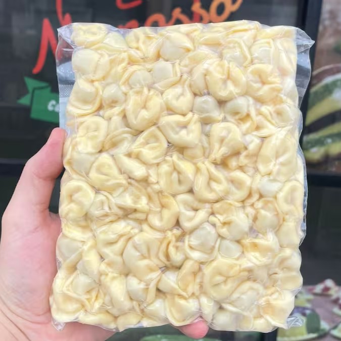 Nosso capaletti é feito a mão com massa caseira e recheado com frango desfiado.
