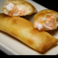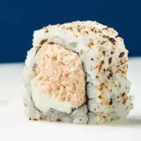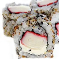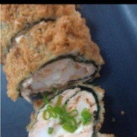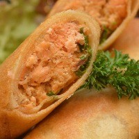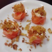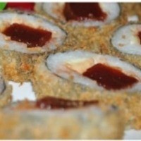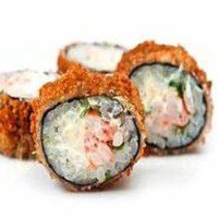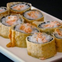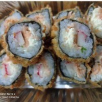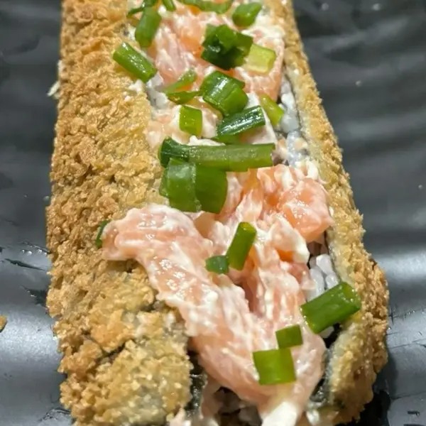 Salmão e cream cheese, empanado na farinha panko e kani cebolinha.