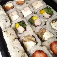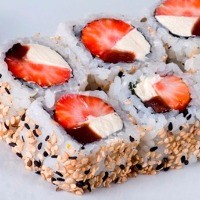Goiaba em formato de sushi com recheio de cream cheese e morango.