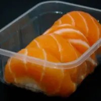 Bolinho de arroz coberta por fatia de salmão - 4 unidades.