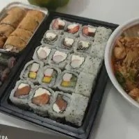 Yakissoba de frango (g), refri 2l sushi - 03 (4 uni), uramaki filadelfia (4 uni), uramaki california (4 uni), skin (4 uni), romeu (4 uni), kani (4 uni), hossomaki salmão (4 uni), hossomaki kani (4 uni), hossomaki pepino (8 uni) hot fila.