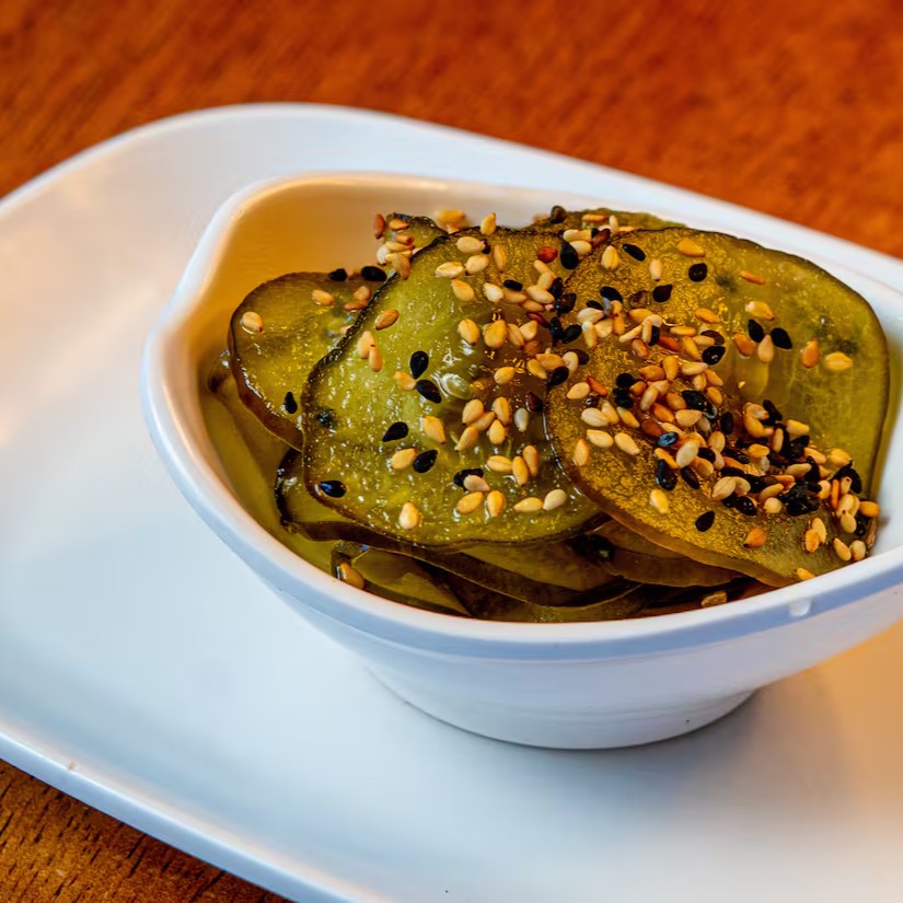 Lâminas de pepino japonês ao molho agridoce.