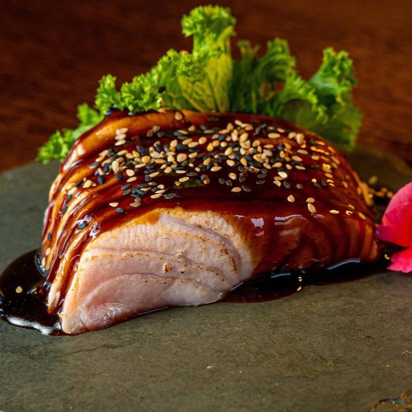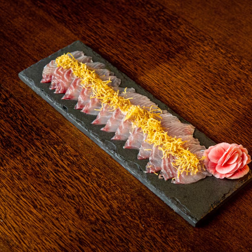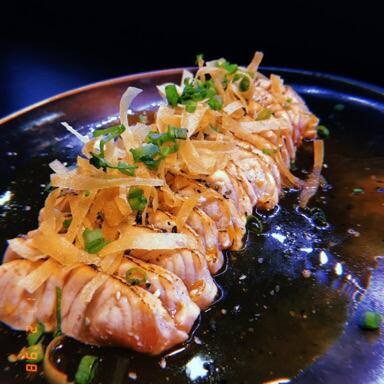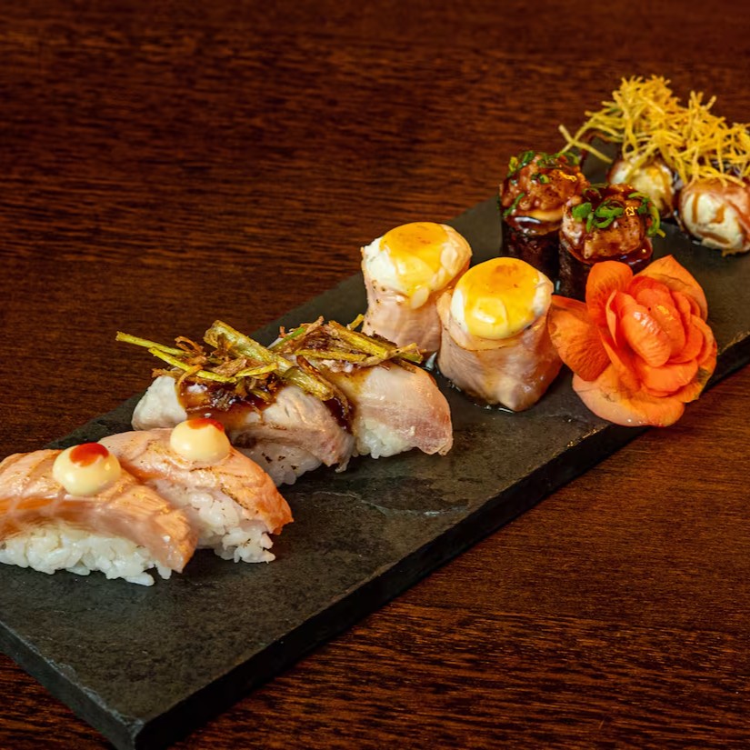 6 sashimi tataki, 6 sashimi gomayaki, 2 niguiri supaishi, 2 shake hot, 2 niguiri gorgonzola, 2 niguiri sugoi, 2 joe pepper jelly,