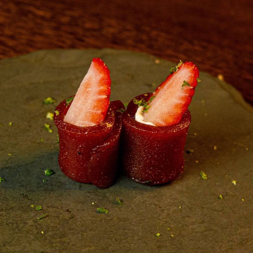 Nori envolto de arroz ,goiabada , morango e cream cheese