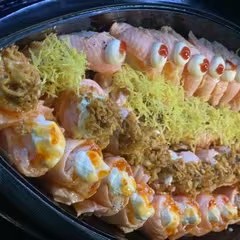2 niguiri supaishi, 2 salmon crispy, 2 shake hot, 2 niguiri sugoi, 2 joe pepper jelly