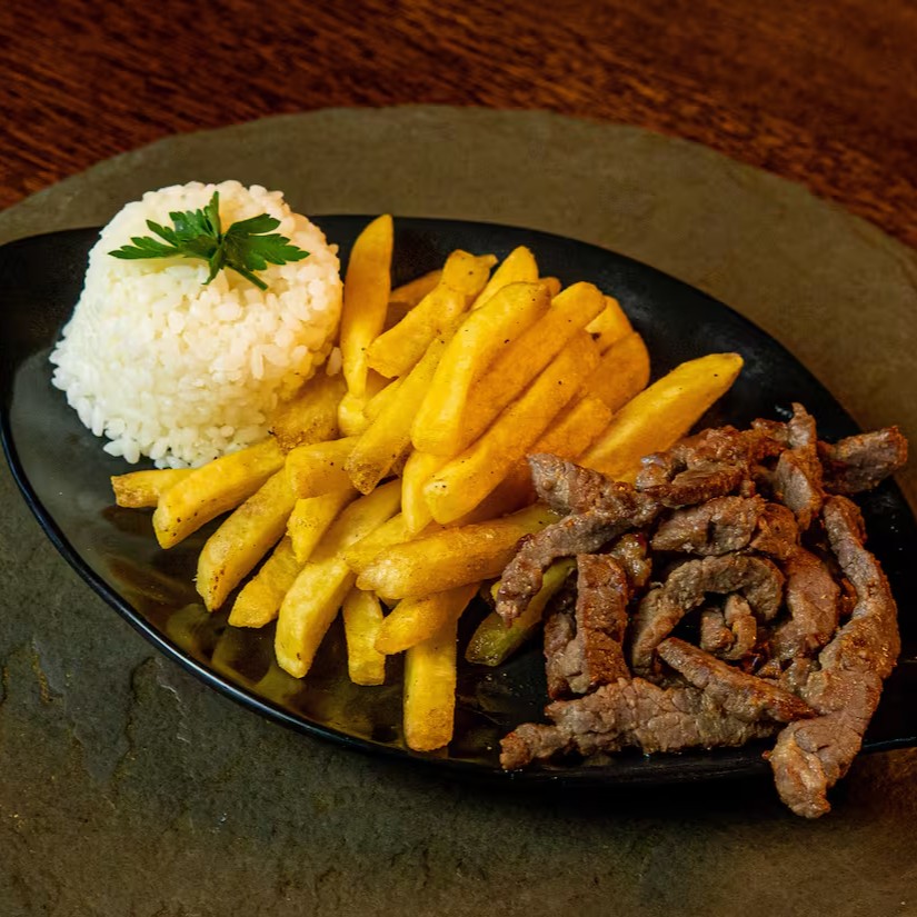 Carne ou Frango, acompanha fritas.