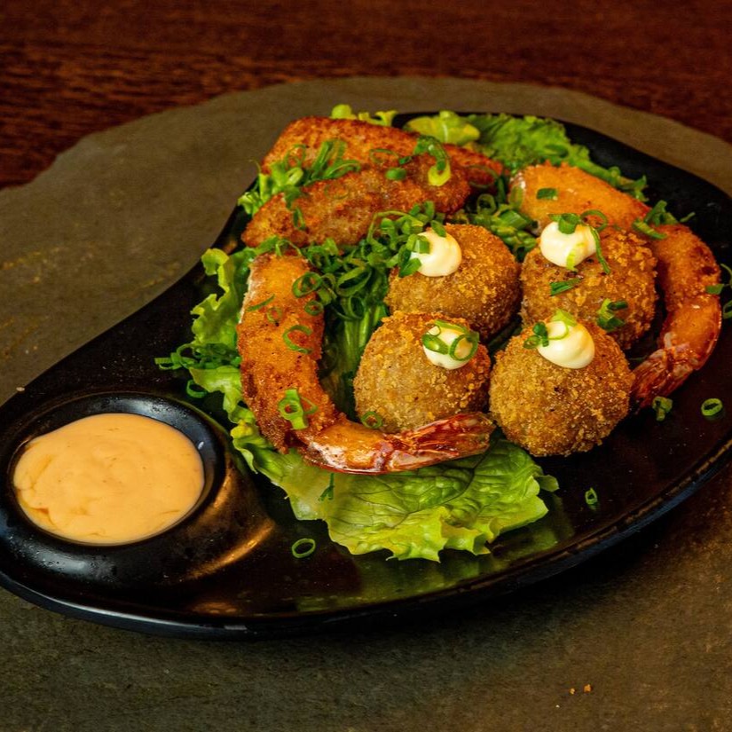 Roll empanado e frito, recheio de camarão, cream cheese e molho especial.