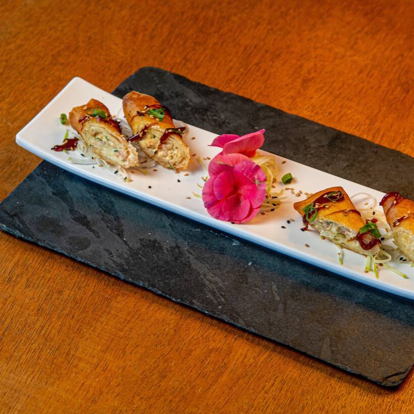 Rolinho primavera de camarão com cream chesse