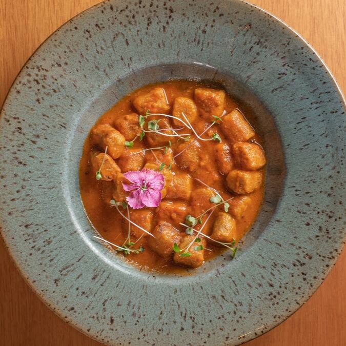 Nhoque de batatas (doce / asterix) e molho de tomate da casa. Acompanha mini salada temperada com nosso vinagrete de manjericão (entrada).