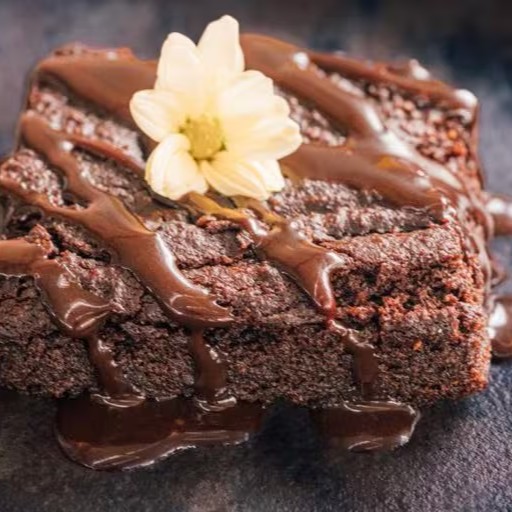 Delicioso brownie saudável, feito com farinha de arroz integral, chocolate belga, ovos, açúcar demerara orgânico, canela e óleo de de coco extra virgem.