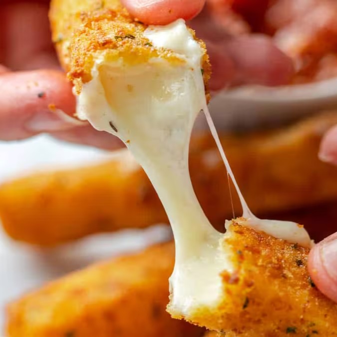 Dadinhos de queijo muçarela envolto em farinha Panko servido com mel