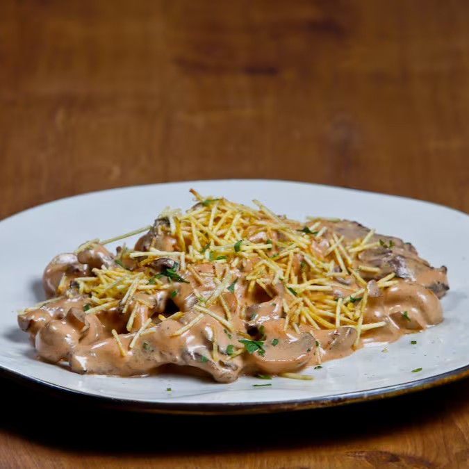 Apresentamos uma irresistível tentação fora do cardápio italiano: o nosso suculento Strogonoff de Mignon. Este prato, embora não seja italiano, conquista corações com a sua combinação harmoniosa. O mignon, macio e saboroso, se une ao molho cremoso e rico em sabor, criando uma experiência culinária de dar água na boca. O prato ainda vem acompanhado de um arroz branco soltinho, perfeitamente cozido, e a batata palha crocante, proporcionando uma combinação de texturas e sabores inesquecível. Desfrute desta oferta especial e renda-se ao encanto do nosso Strogonoff de Mignon!