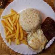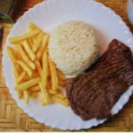 Delicioso corte selecionado de bife bovino e um ovo frito. Acompanha arroz, feijão e um acompanhamento à sua escolha.