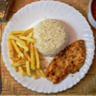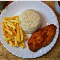 Delicioso filé de frango bem temperado e empanado com farinha de rosca fresca. Acompanha arroz, feijão fresquinho e uma porção de batata frita crocante!