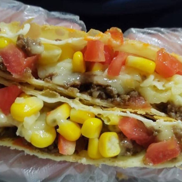 Pastel recheado com carne moída bem temperada, queijo muçarela derretido, milho docinho e tomate fresco. Casquinha crocante por fora e recheio suculento por dentro. Simples, marcante e cheio de tradição!