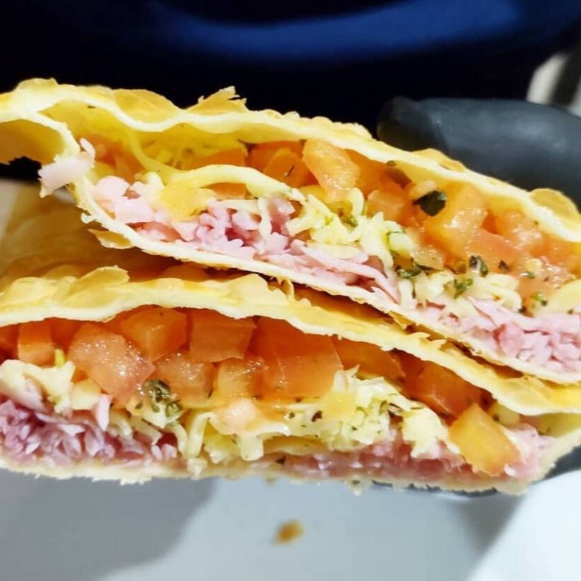 Pastelzão de 20cm, recheado com muçarela derretida e puxa-puxa, presunto fatiado, tomate fresco e orégano clássico de pizzaria. Casquinha crocante por fora, recheio molhadinho e caprichado por dentro. O sabor de pizza que você ama, agora em pastel!