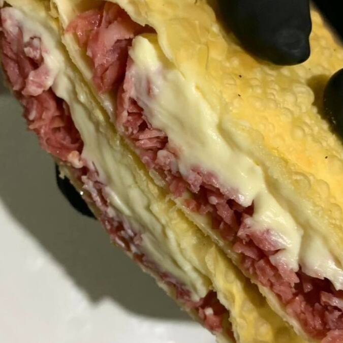 Pastel super recheado com calabresa, queijo, muçarela derretido, ovo cozido, milho, tomate fresco e requeijão cremoso. Massa crocante e sabor intenso que vai te conquistar no primeiro pedaço!
