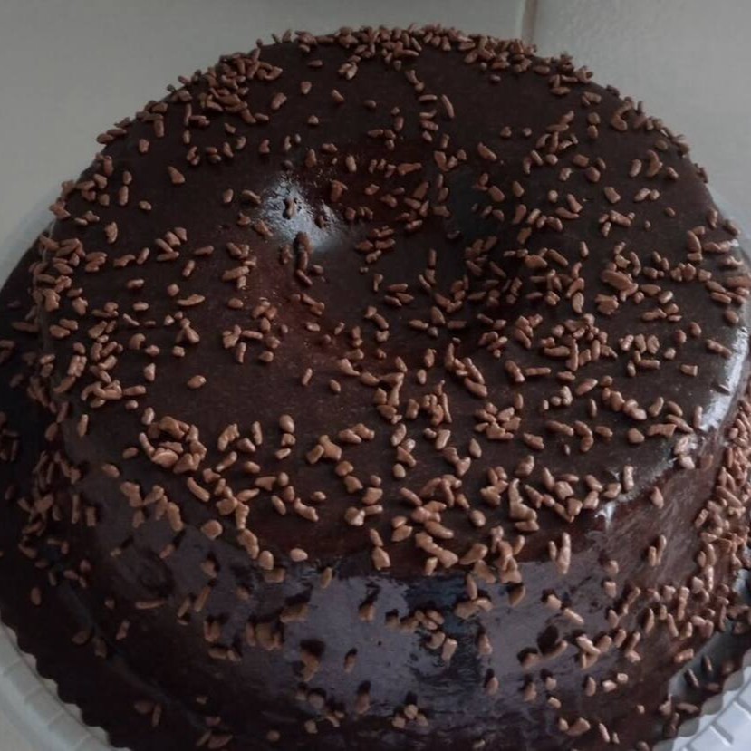 Maravilhoso bolo de chocolate com massa macia, com cobertura de brigadeiro (aproximadamente 600 gramas)