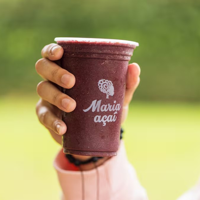 Copo P (300ml) de açaí artesanal Maria Açaí batido na hora (receita exclusiva) + 3 opções de acompanhamentos (escolha considerando a lista pré-estabelecida no cardápio). O copo irá tampado, e lacrado com os acompanhamentos em três partes: fundo, meio e topo. Não enviamos acompanhamentos separados. Acompanhamentos não são vendidos separadamente. Imagem ilustrativa.