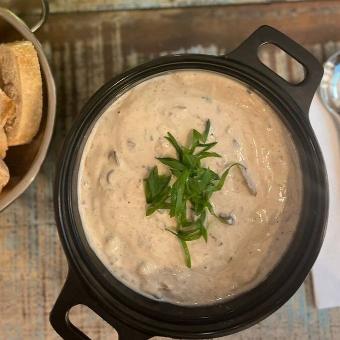 Um creme elegante e envolvente preparado com um blend de cogumelos Paris, Portobello, Shitake e Funghi Secchi. Textura aveludada, sabor terroso e profundo, finalizado com um toque de creme fresco e azeite trufado. Um prato que celebra o melhor da terra com sofisticação.