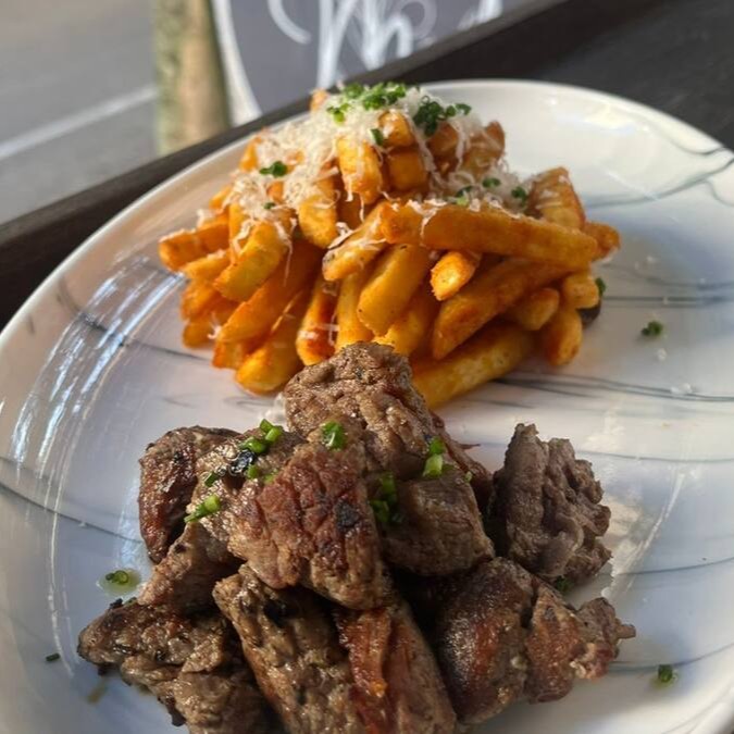 Suculento emincé de mignon, salteado até dourar, acompanhado de batatas fritas crocantes.