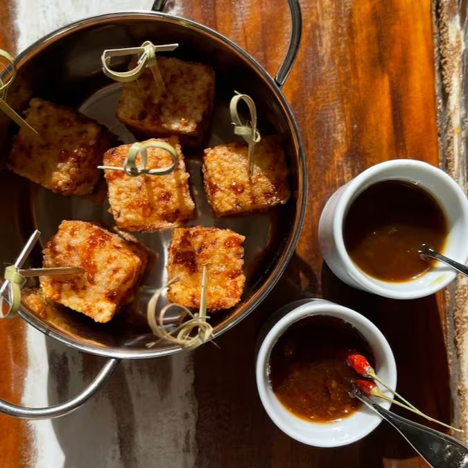 Crocantes dadinhos de tapioca, quentinhos e leves, acompanhados de uma deliciosa geleia de pimenta artesanal.