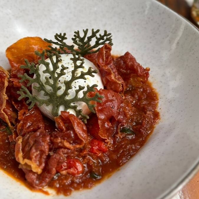 Uma deliciosa Burrata fresca, servida em uma cama de nosso molho Sugo artesanal, rico e cheio de sabor, presunto de Parma crispy. Acompanhada de uma Ciabatta.