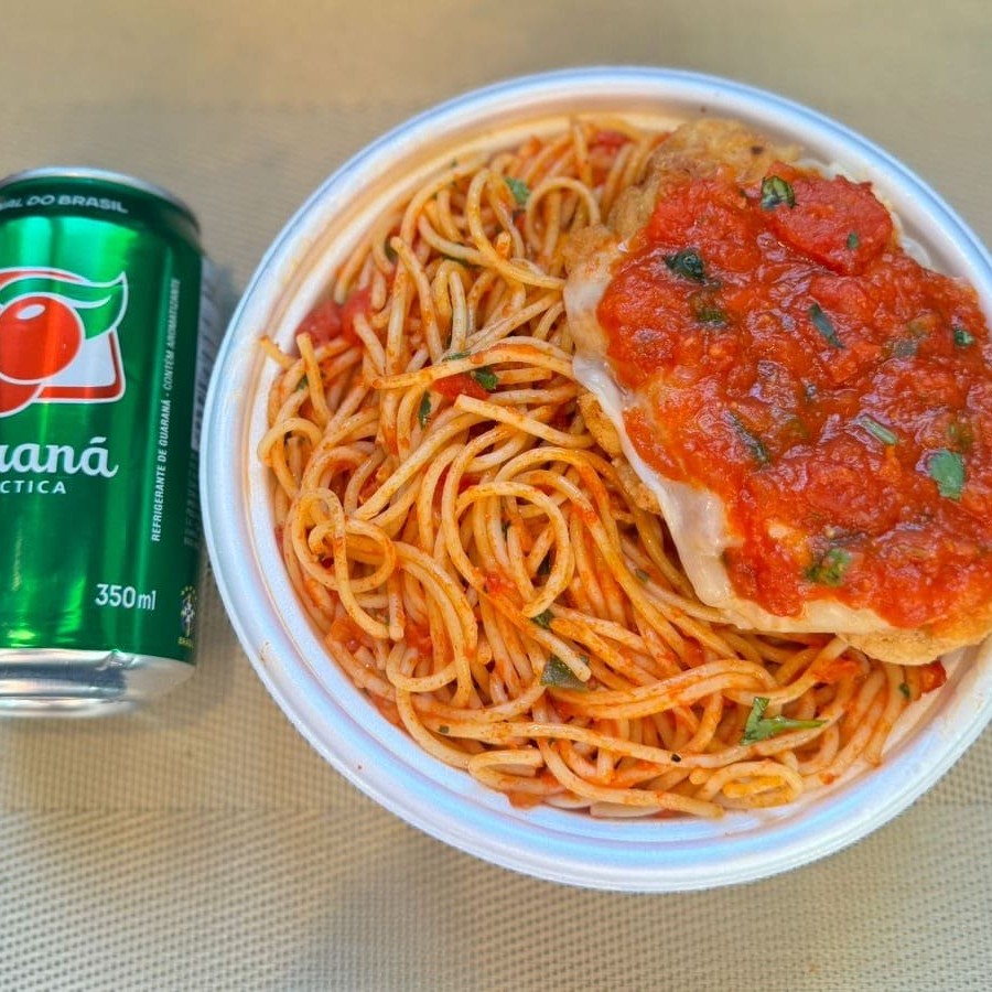 Espaguete & Parmegiana Frango + Lata Guaraná + R$ 14,99 Leve Outra Marmitex