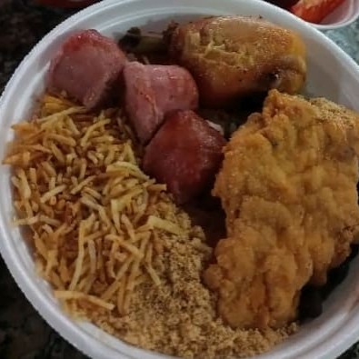 Acompanha arros feijão macarrão farofa