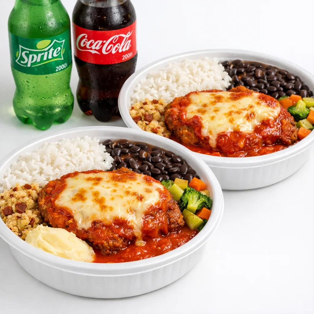 2 Marmitex P Completa + 2 refrigerantes 200 ml