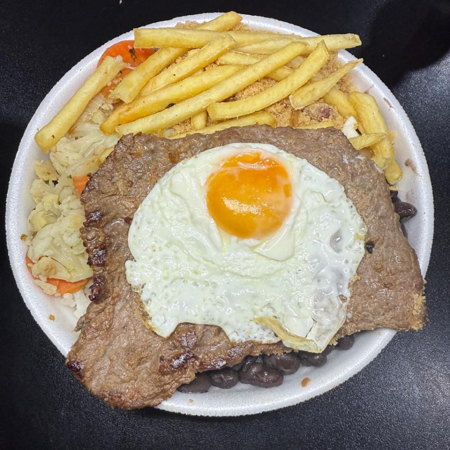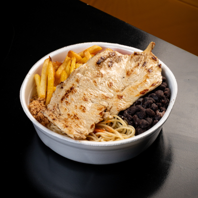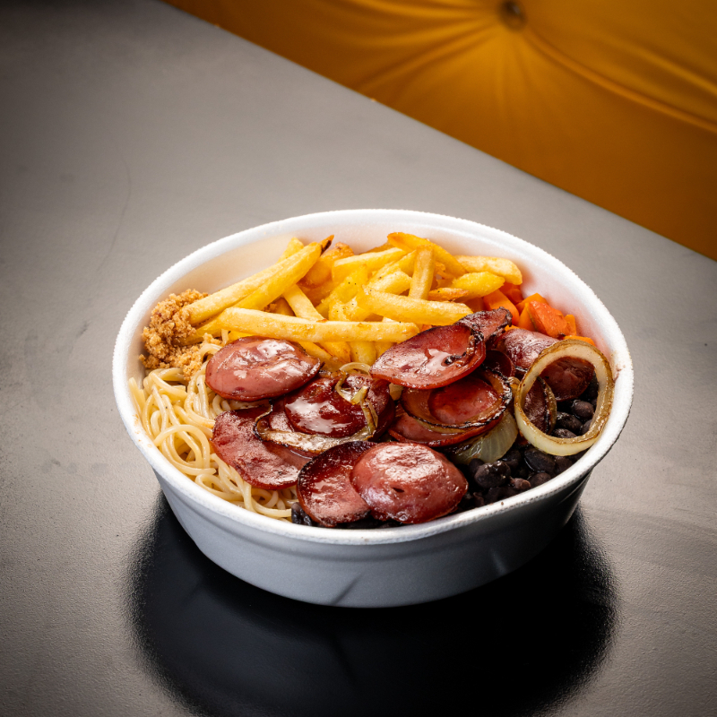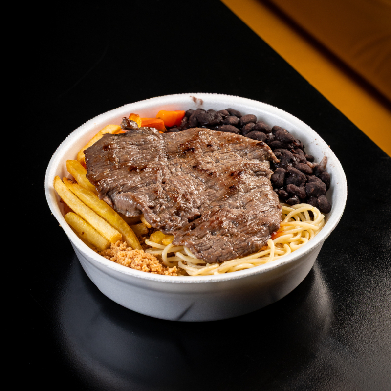 Marmita caseira, com arroz soltinho, feijão fresquinho, macarrão ao vapor, farofa de bacon crocante, legumes da estação e sua proteína favorita.Ideal para almoço no trabalho: sabor caseiro e bem servida.