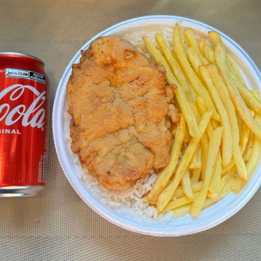 Frango Empanado & Fritas + Lata Coca Normal + R$ 14,99 Leve Outra Marmitex
