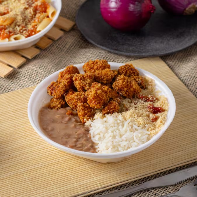 Isca De Frango Empanada Na Panko, Arroz, Feijão E Farofa