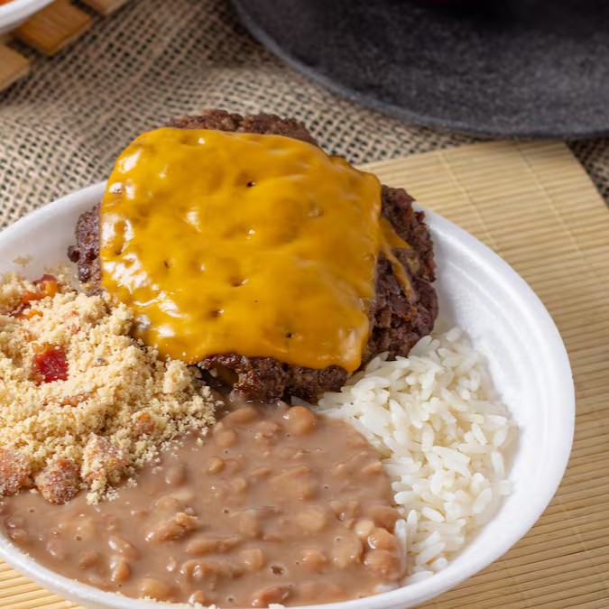 Duplo smash + 2 Fatias de queijos, arroz, feijão e farofa