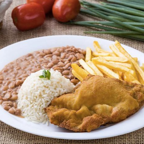 Arroz, Feijão, Farofa, Batata frita, 2 Frango á milanesa