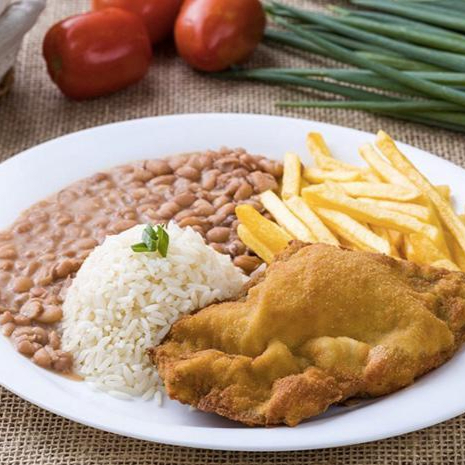 Arroz, Feijão, Batata frita e Tilapia a Milanesa