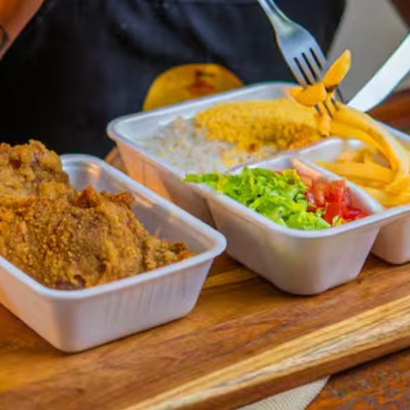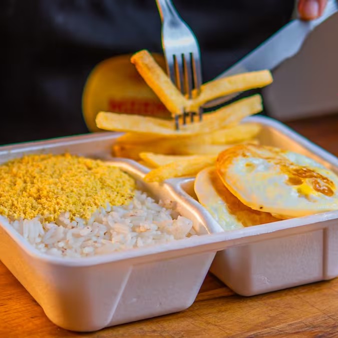 Nossos Pratos Executivos São Enviados em Embalagens com Repartições, Garantindo Mais Praticidade. Recebeu, Tirou a Tampa e Já Pode Comer!