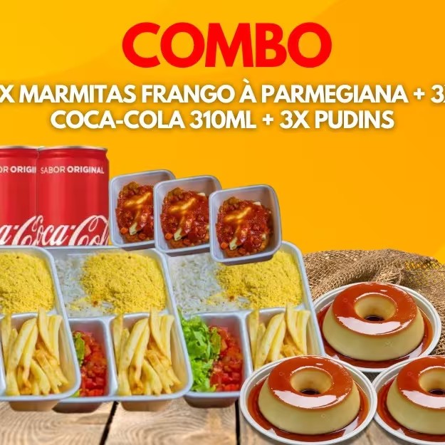 Combão - 3x Marmitas Frango A Parmegiana + 3x Coca-cola 310ml + 3x Pudins