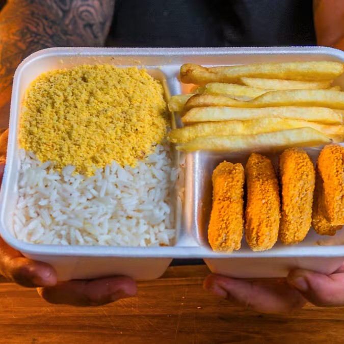 Cada Pedaço do Nosso Nuggets de Frango É Crocante por Fora, Suculento por Dentro e Acompanha Arroz, Feijão, Farofa e Batata Frita. Uma Refeição Completa.