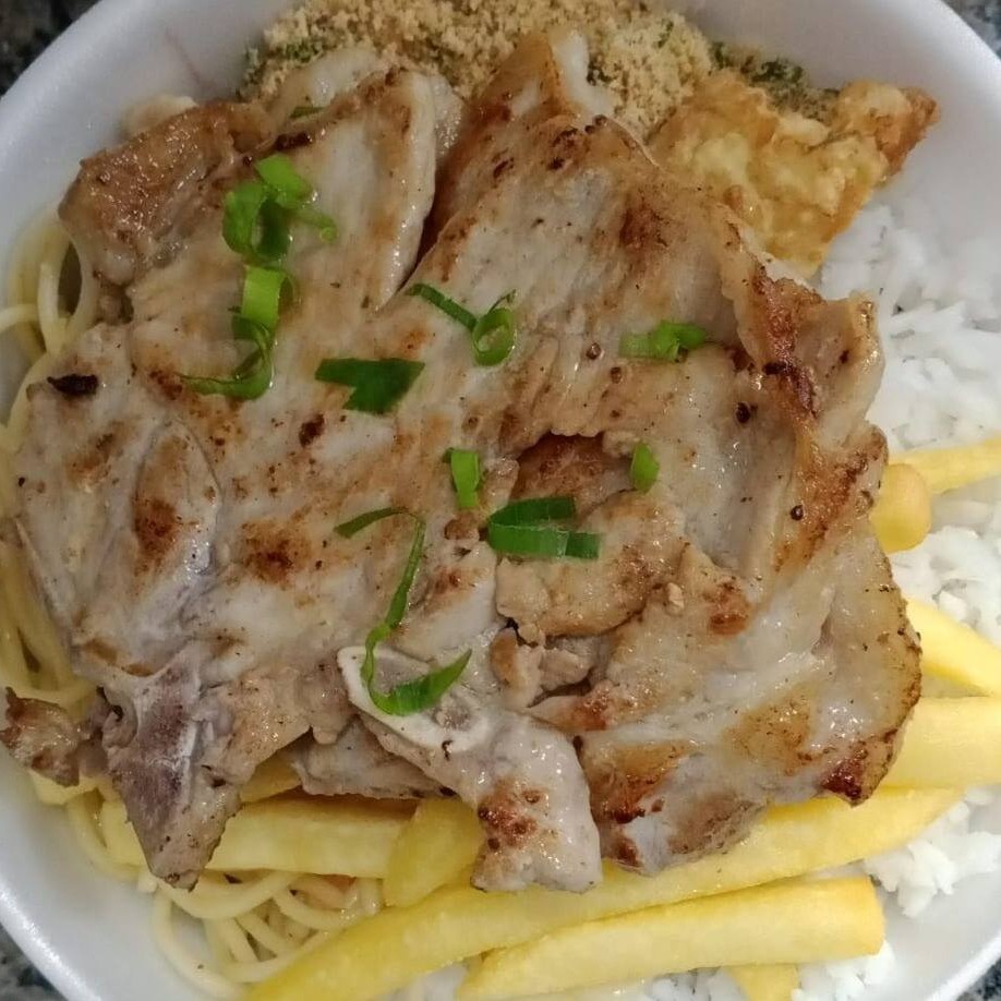 Arroz, feijão, macarrão, farofa, bisteca de porco ou frango grelhado! Pra quem gosta de uma comida caseira e tradicional! Onde o tempeiro é quem manda!
