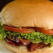 Pao, hamburguer, bacon, queijo mussarela, presunto, alface e tomate