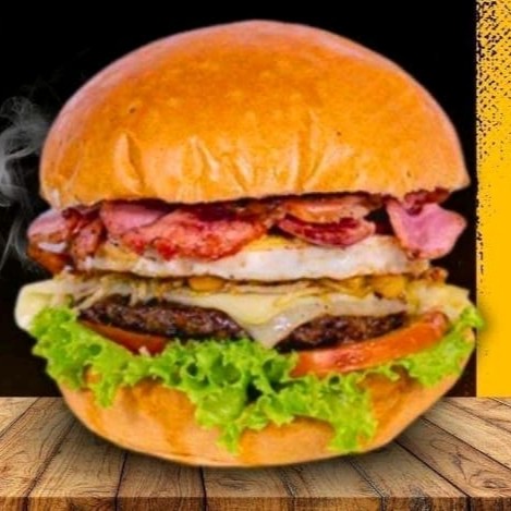 Delicioso x-tudo com pão, hambúrguer, ovo, bacon, calabresa, queijo, presunto, alface e tomate, ótima pedida para seu lanche a qualquer momento do Dia!