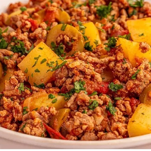 Iscas De Carne Acebolada Com Fritas - Pequena