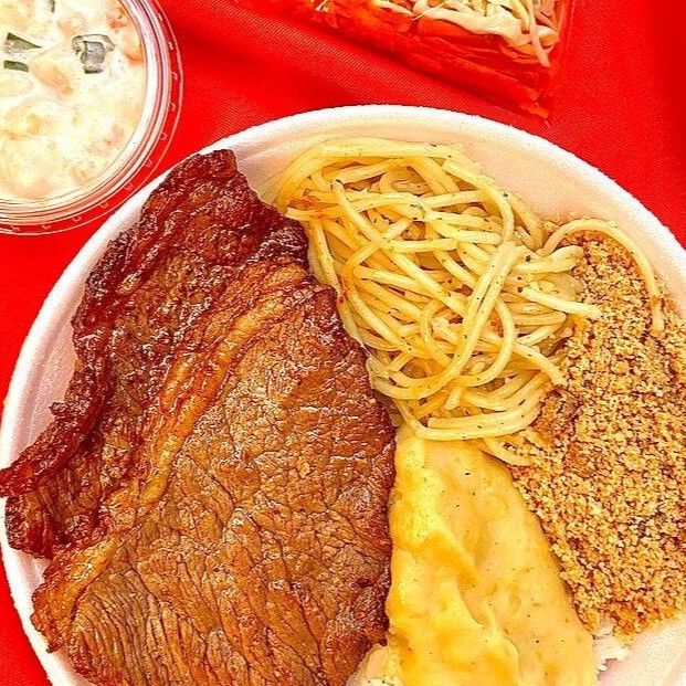 Acompanha: Arroz, feijão, batatas chips, massa do Dia, Farofa, puê e Salada do Dia e maionese Á Parte.