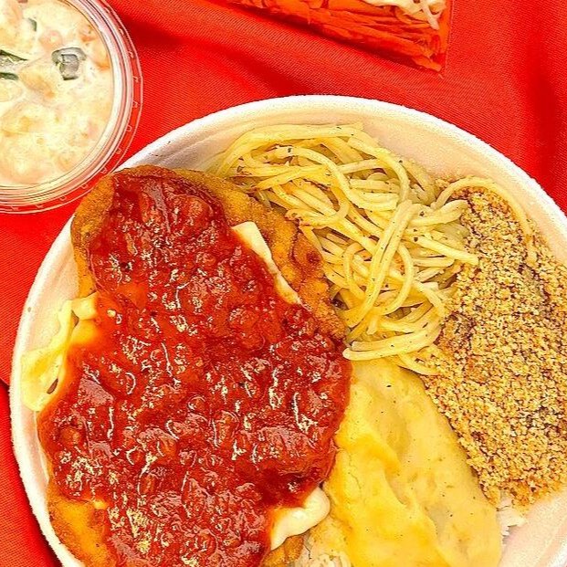 Parmegiana suculenta e crocante , acompanha : arroz, purê de batata + Salada do dia + Maionese + Batata palha + Coquinha 200 ml