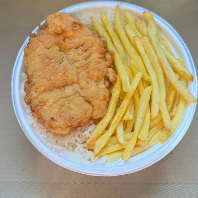 Marmita P - Frango Empanado Com Arroz, Feijão E Fritas.