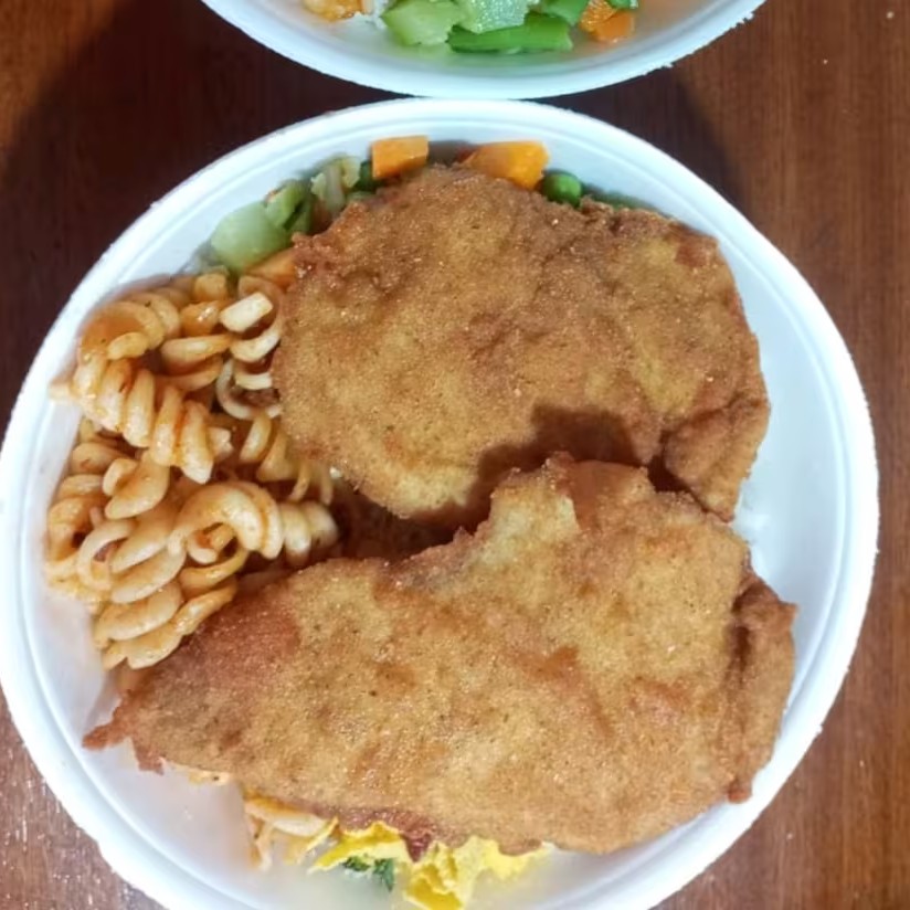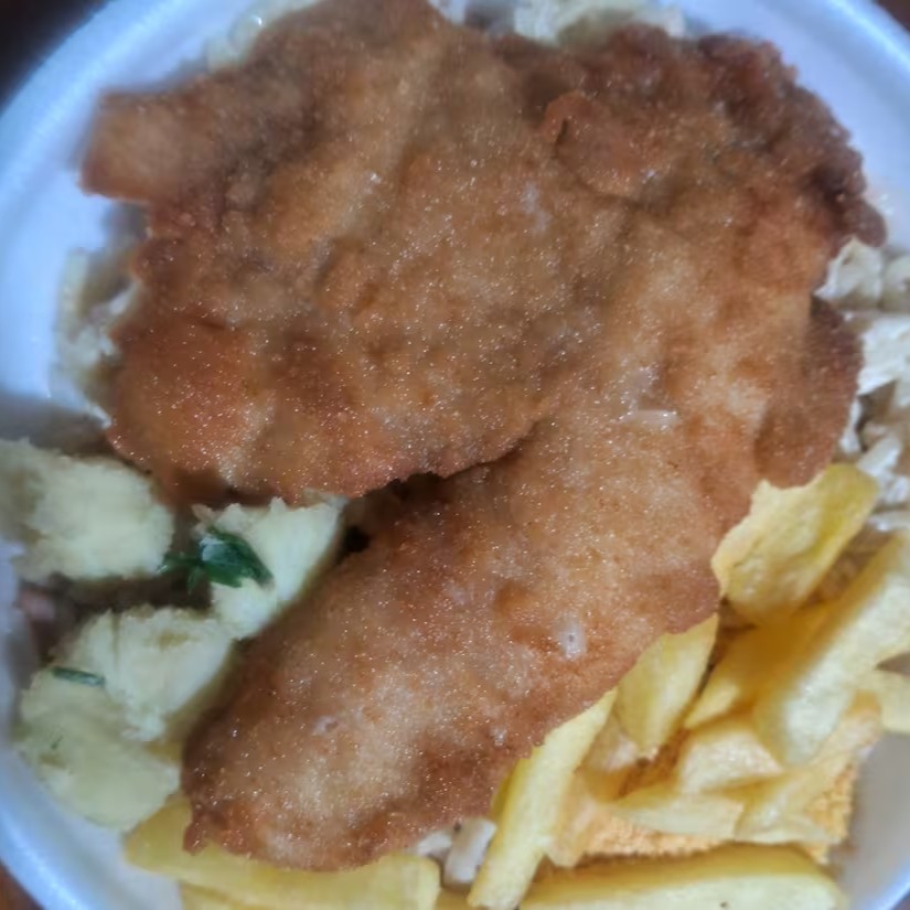 Marmita P - Filé De Tilapia Empanado Com Arroz, Feijão, Macarrão E Fritas