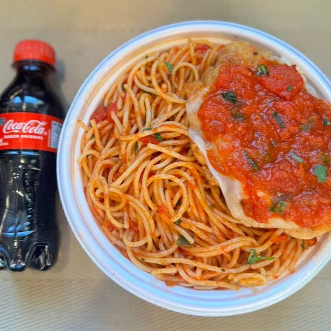 Marmita P - Parmegiana Frango E Espaguete Do Dia + Coca Cola 200ml