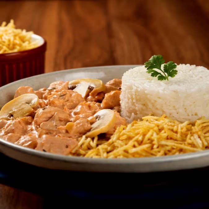 Marmita - Estrogonofe De Frango Com Arroz E Batata Palha Para 2 Pessoas