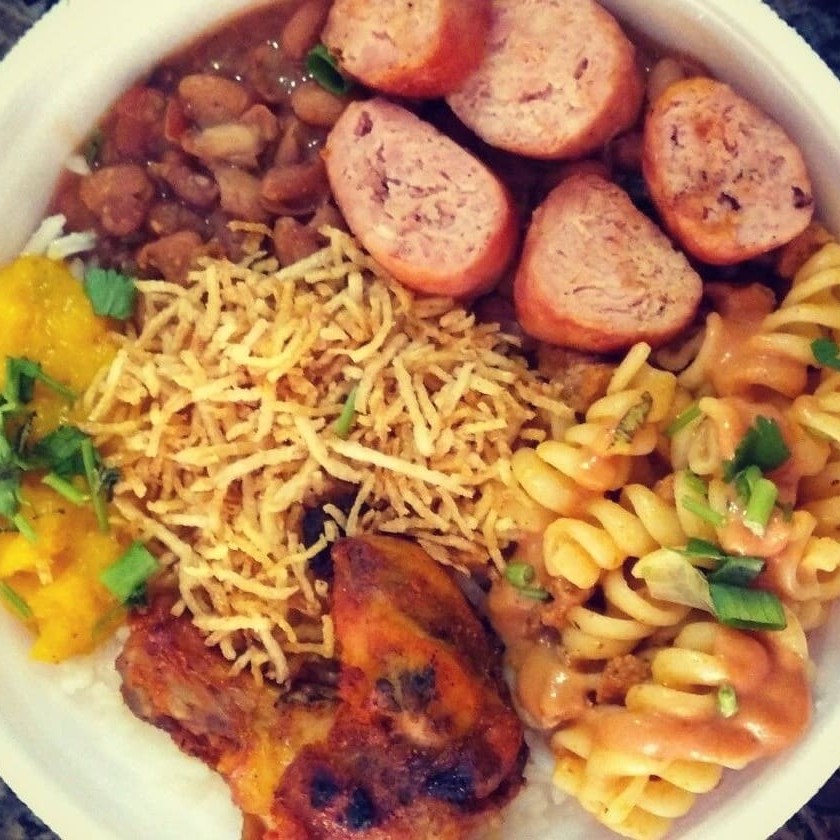 Nossa Marmitex - M oferece uma generosa porção de uma a duas carnes suculentas e saborosas, escolhidas cuidadosamente para maximizar seu prazer gastronômico. Acompanha um arroz branco e macio um feijão branco ou preto, preparados ao ponto de perfeição. Temos ainda um macarrão, que se une harmonicamente ao conjunto. A farofa, crocante e bem temperada, e o acompanhamento do Dia, sempre fresco e saboroso, complementam este banquete. Por fim, um legume refogado, repleto de cor e sabor, traz o toque final a esta delícia. Uma refeição completa para satisfazer os paladares mais exigentes. Na ausencia de escolha do feijão será enviado o feijão disponivel do Dia !